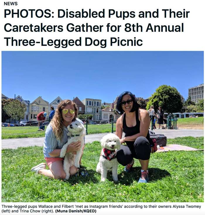 Here's another online article about the Tri-Pawed Dog Picnic yesterday. Wallace and I (and Filbert and Alyssa) made the cover photo of this one!